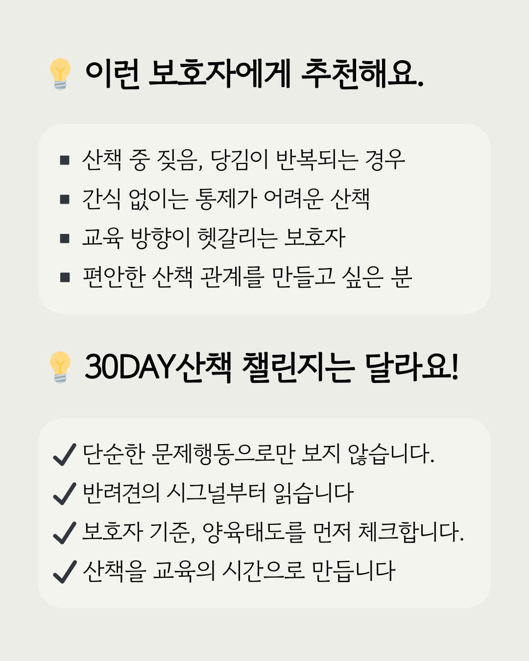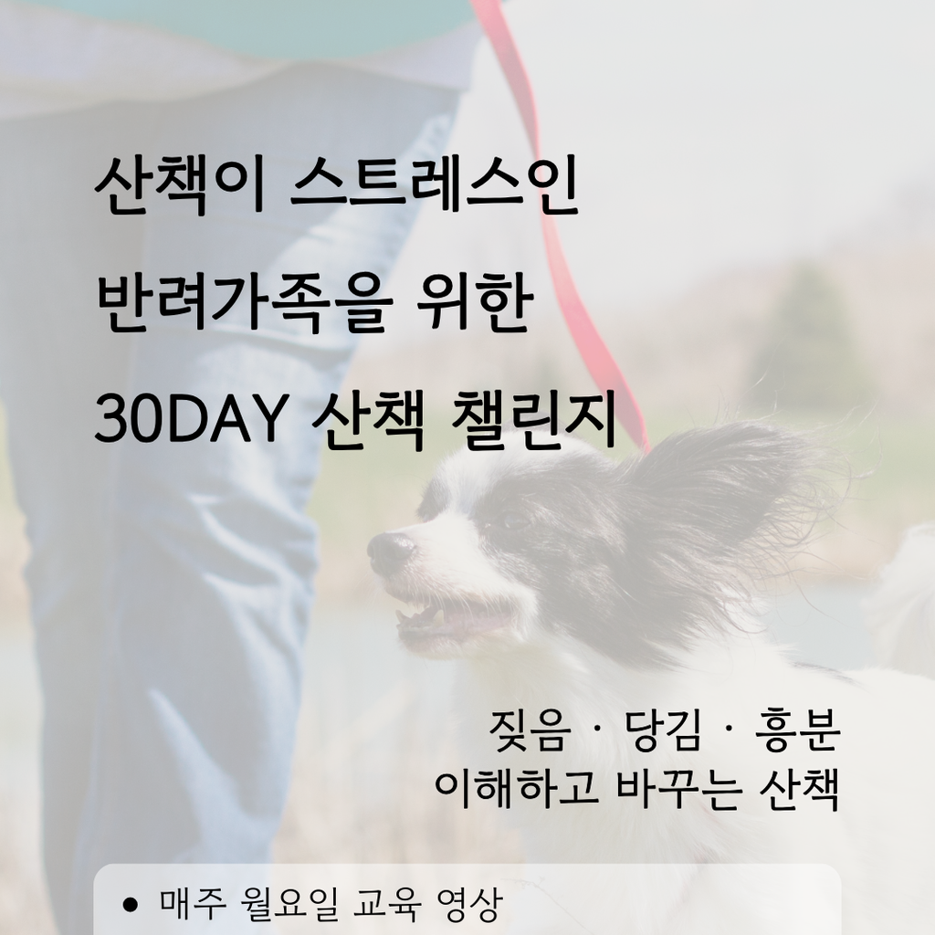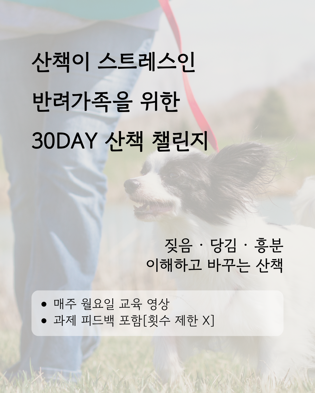 산책 시 흥분도, 줄당김, 짖음 등 문제행동 수정을 위한 산책 교육 챌린지
