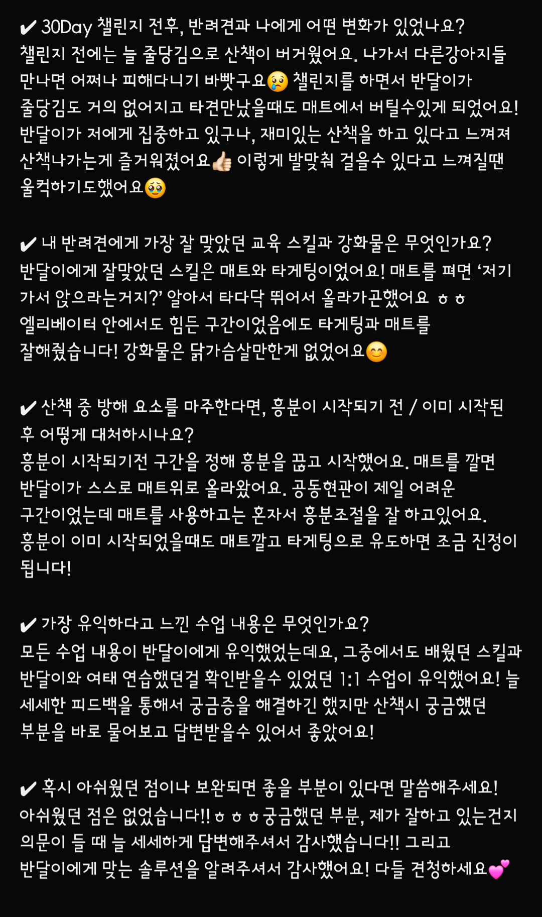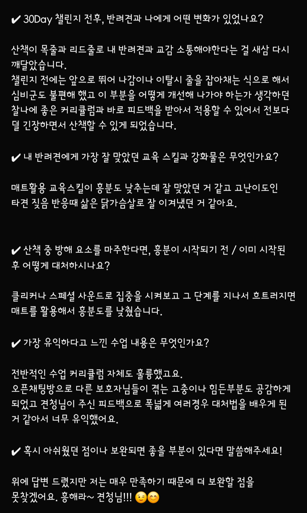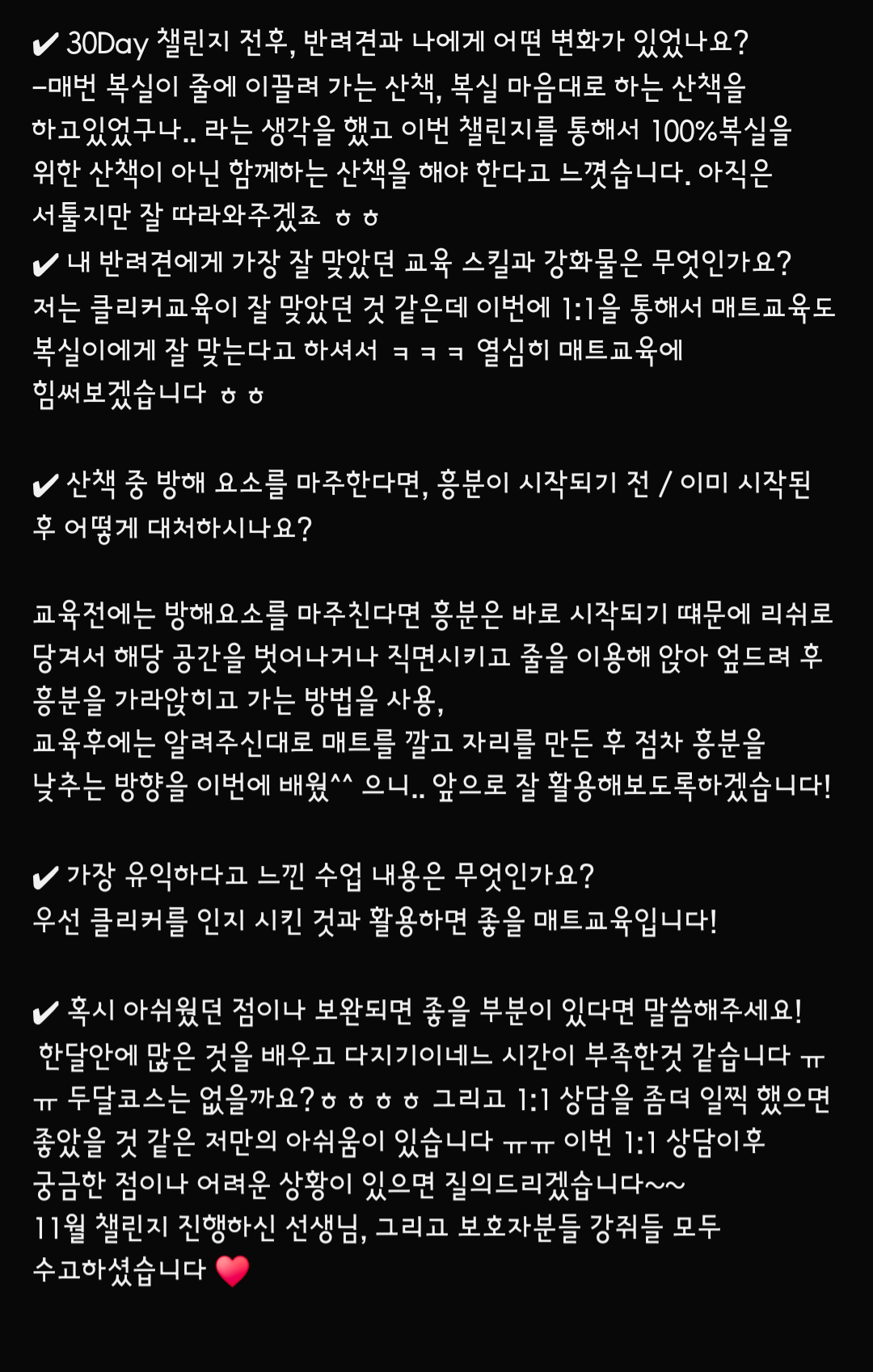 산책 시 흥분도, 줄당김, 짖음 등 문제행동 수정을 위한 산책 교육 챌린지