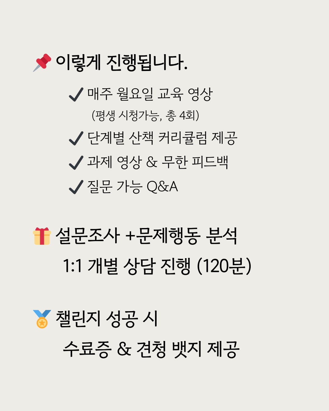 같은 문제를 겪고 있는 다른 보호자님들과 함께! 딱 한 달동안! 진행됩니다.