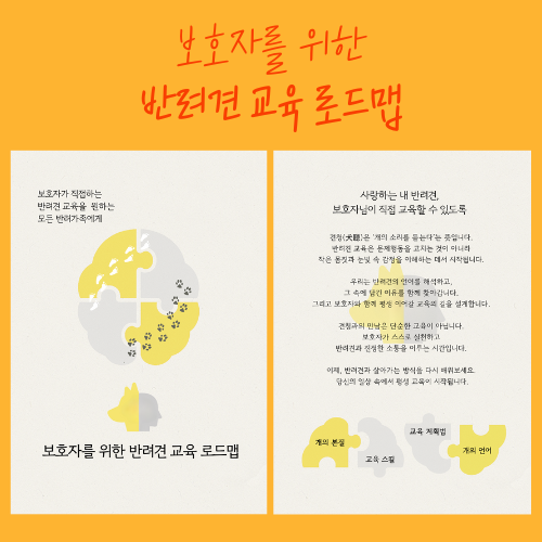 보호자가 직접하는 반려견 교육을 돕기 위한 '반려견 교육 로드맵' 판매 페이지입니다.